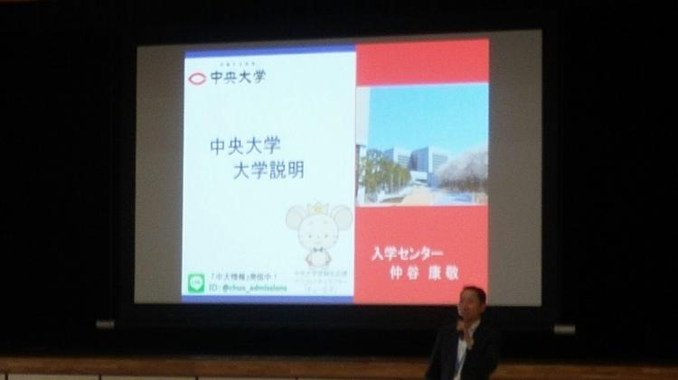 中央大学入学センターから仲谷様をお招きし、中央大学の学部学科の説明をしていただきました。
