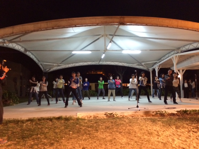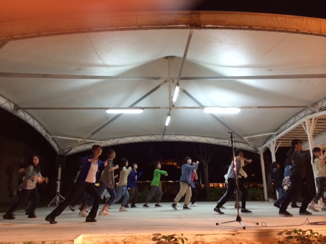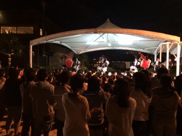 夜はビーチでダンス、騎馬戦、エイサー鑑賞とエイサー舞踊。