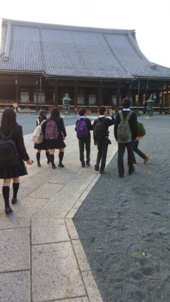 本日は朝から班別自主行動での研修を行いました。また、その途中で扇子の絵付けや八つ橋作りなどの体験学習に取り組みました。