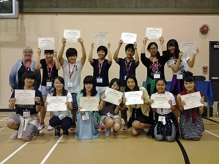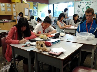 学校での研修は今日が最終日となります。午前中はカナダ人の先生やバディーに手伝ってもらいながらホストファミリーへの感謝の手紙を完成させました。午後は「さよならパーティー」の準備です。そして、午後7時からいよいよ「さよならパーティー」の始まりです。はじめにカナダ人の先生から修了証書をいただきました。そのあと、お世話になったホストファミリーやバディーたちに感謝の気持ちを込めて、歌やダンスを披露したり、浴衣、書道、折り紙など日本の伝統文化を紹介したりしました。どれもたいへん喜んでいただいて、思い出深いものになりました。