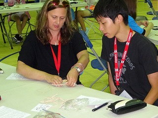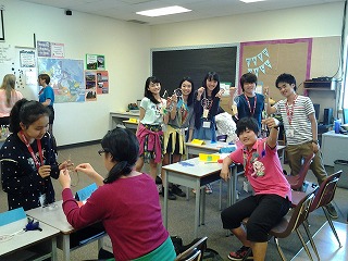 午後は、カナダ先住民に伝わる「ドリームキャッチャー」作りに挑戦しました(「ドリームキャッチャー」は、枕元に飾っておくと、悪夢は網に引っかかって、良い夢だけが通り抜けてその人のもとに届くといういわれのある装飾品です)。作り方の説明を英語で聞いてみんな上手に完成させました。