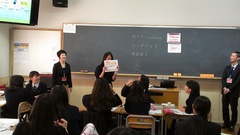 本日(11/6)本校高校1年生6クラスのうち4クラス対象に「高校生向け独占禁止法教室」を開催いたしました。公正取引委員会より4名の講師をお招きし、各クラス50分の授業をご担当いただきました。通常の授業とは違った雰囲気に、生徒は皆真剣な表情で授業を受けていました。