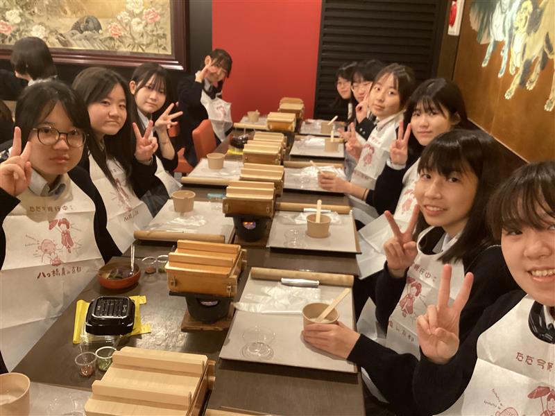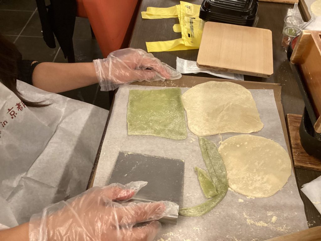 B組は八ツ橋作りに挑戦です。これまで京都のお土産として食べることが多かった八ツ橋ですが、作る立場になるのはとても新鮮で、貴重な経験となりました。皆が楽しい雰囲気で八ツ橋を作ることができました。これからお土産で八ツ橋を受け取る度に、この経験を思い出すことになるでしょう!