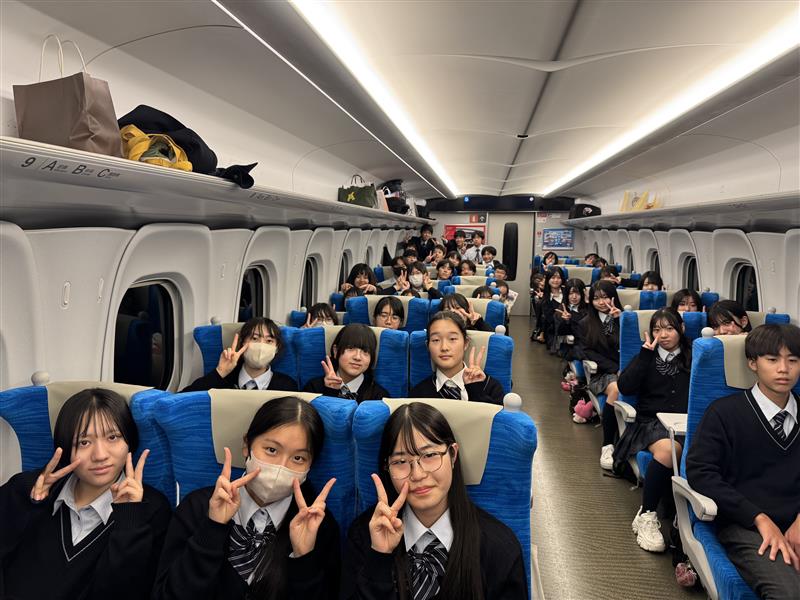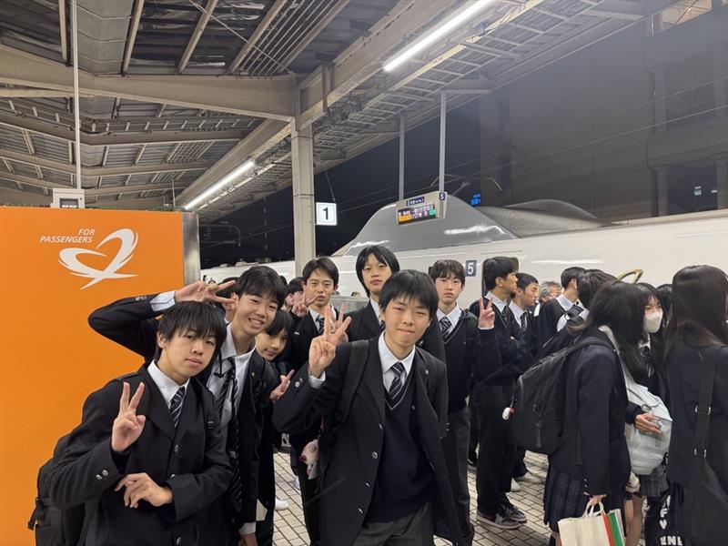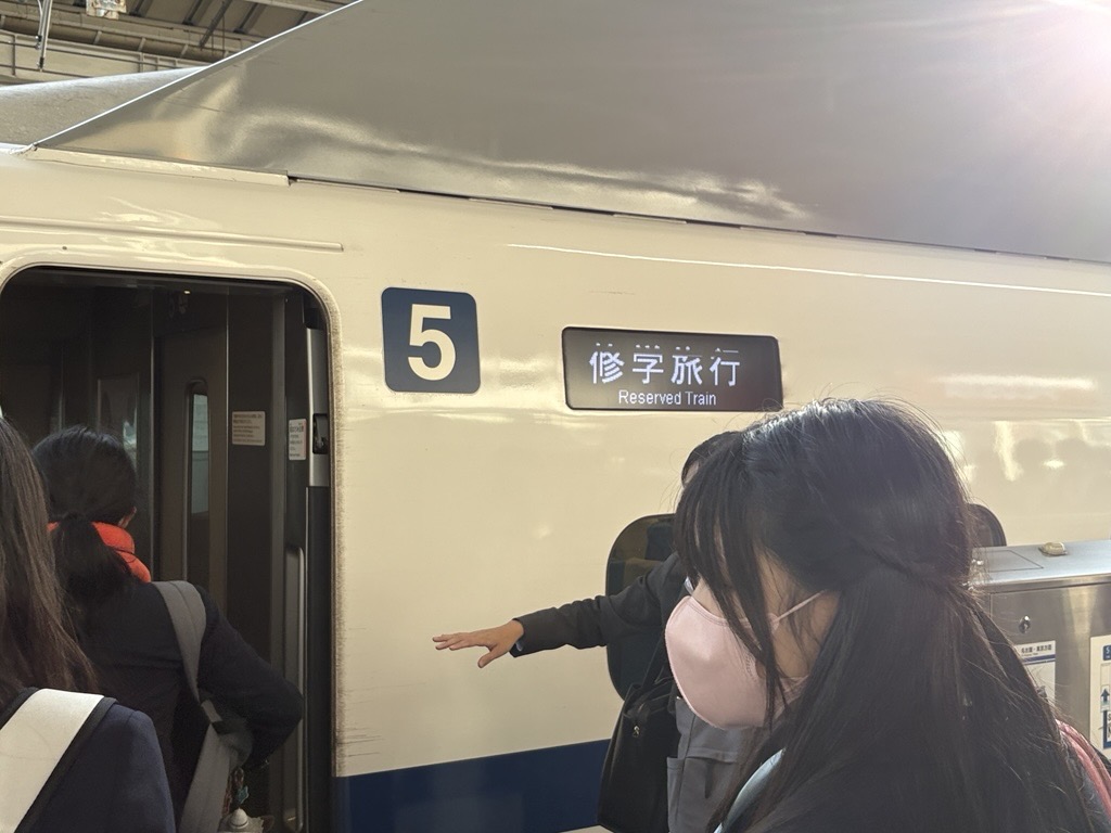クラス別の行程を終えて京都駅に集合すると、いよいよ新横浜に向けた新幹線です。帰りは他校も含め修学旅行の学校を乗せる新幹線だったため、よりリラックスして移動することができました。研修旅行が終わることを実感しつつも、内容盛り沢山な旅行による達成感と疲れで寝ている生徒も多くいました。