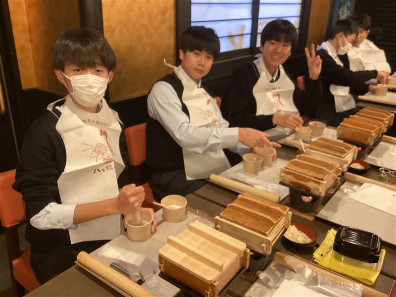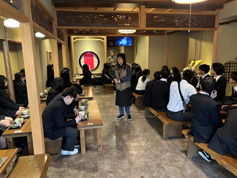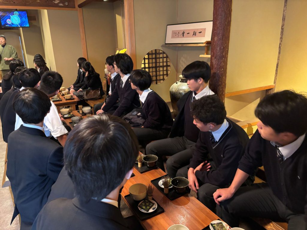 C組は抹茶作り体験です。抹茶だけでなくご主人のお話が人生訓になるような良いお話で、生徒たちが神妙に聞き、後で色々と尋ねたりしていたのが印象的でした。このように経験したことが今後の過ごし方に影響を与えることも研修旅行の魅力と感じます。