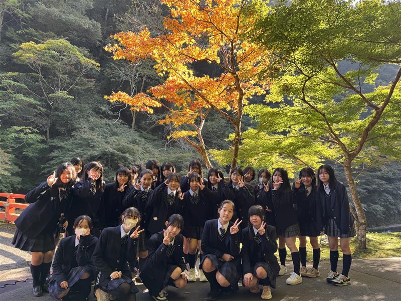 A組は神護寺に登り、かわらけ投げを体験しました。片道約400段ある階段を登り、疲労困憊になりましたが、標高が高いので紅葉も楽しむことができた他、やまびこを聴くこともできました。願いを込めて投げるかわらけ投げも楽しい時間となりました。