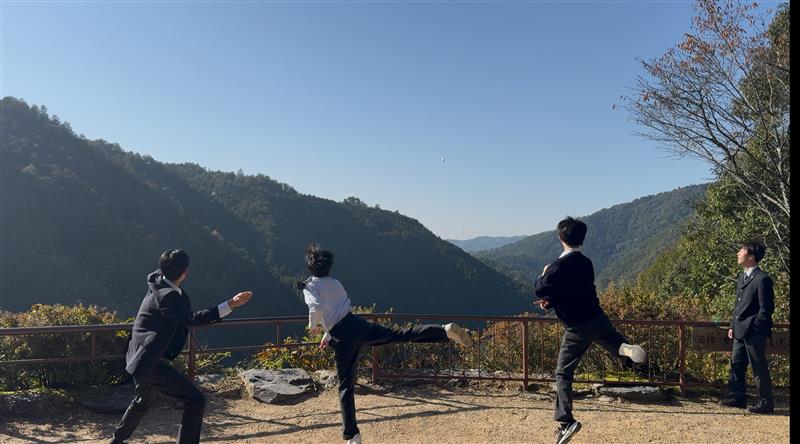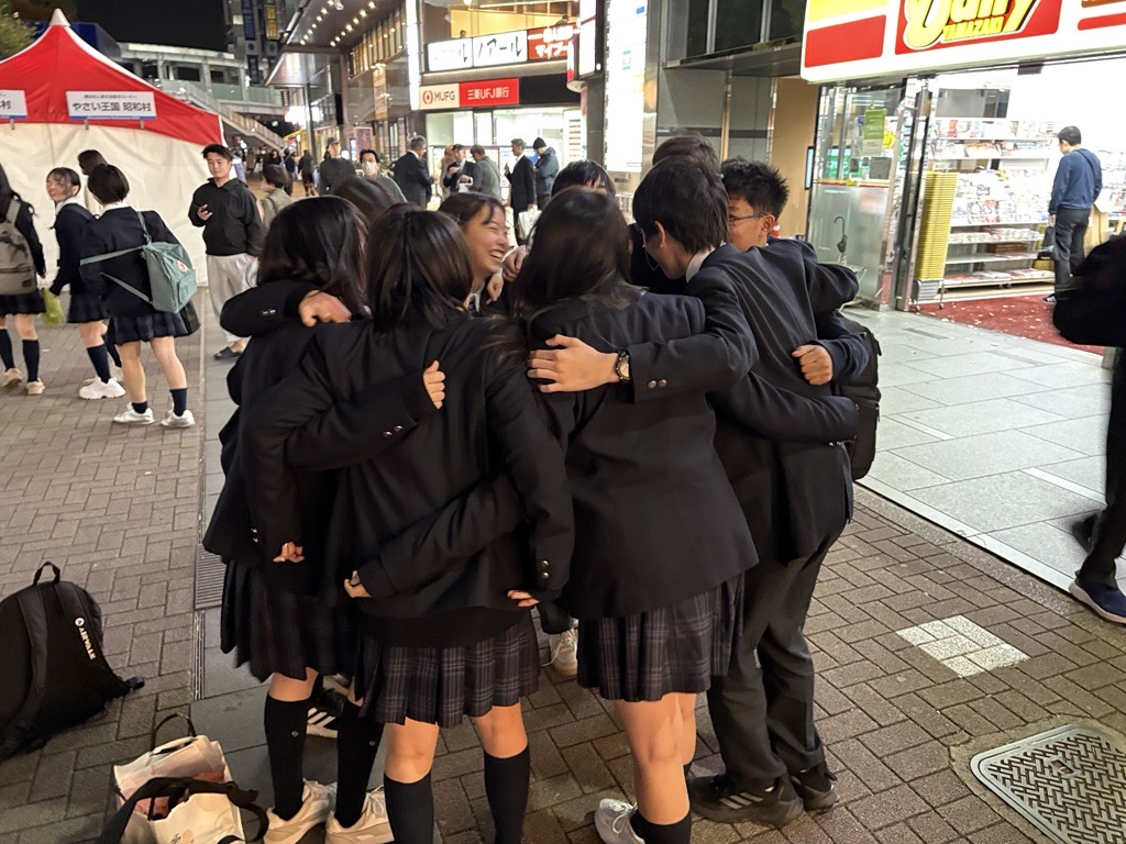 旅行開始時と同様に円陣を組み、互いの結束を最後まで称え合う旅行委員の姿からは、誰かのために努力して協力・行動することの素晴らしさを教えてもらいました。中学2年生まで学年目標として掲げていた『思いやりと感謝の心』『行動する力』を体現しているようで嬉しかったです。