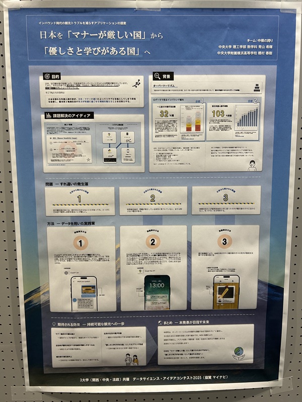 関西大学・中央大学・法政大学の3大学が共催となっている「データサイエンス・アイデアコンテスト2025」の最終選考が11月22日(土)に関西大学梅田キャンパスにて行われました。