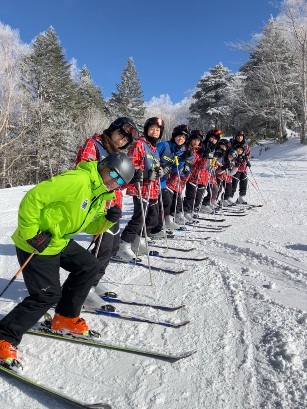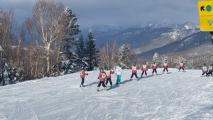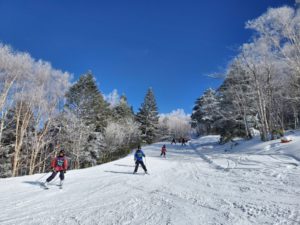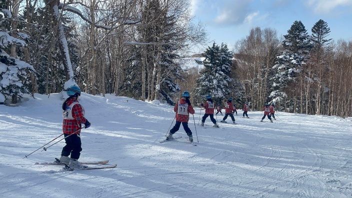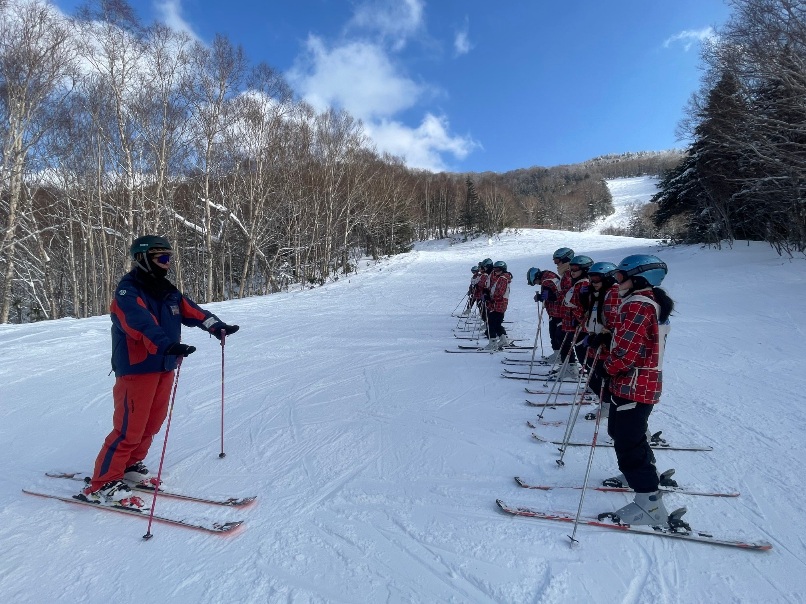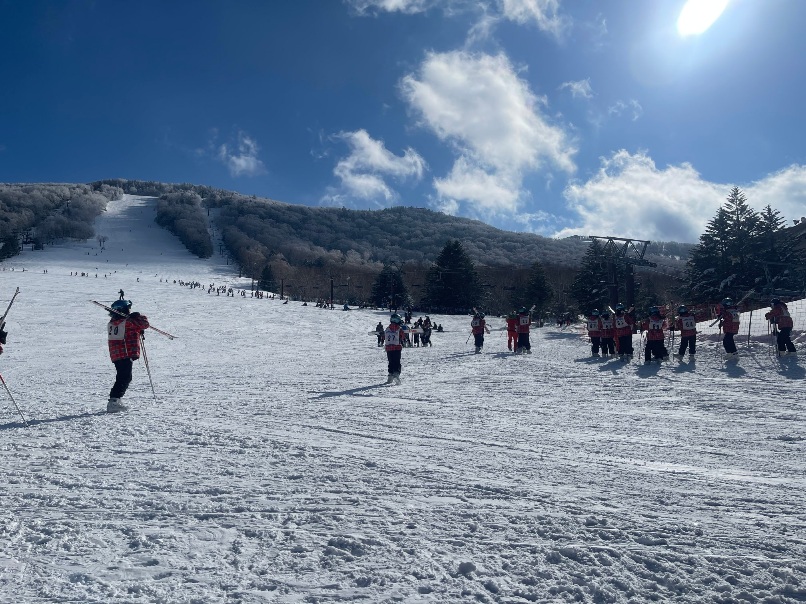 スキー教室3日目、今日も快晴でした。だんだんスキーに慣れてきた1年生は、タンネの森やダイヤモンドスキー場など、少し遠くのゲレンデにも行って滑りました。2年生は午前の講習が3時間とまとまって時間が取れ、ゴンドラに乗ったりして志賀高原のスキー場を大きく回り、西館山スキー場や東館山スキー場を滑ってきました。美しい景色が見える中を滑走することができました。