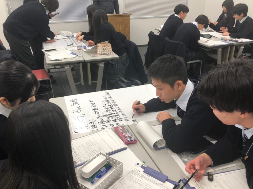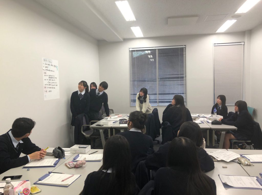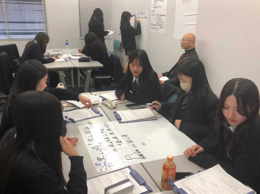 今回の訪問は、4月に中央大学法学部に入学を予定している中横生を対象とした「中央大学入学前特別プログラム」です。中央大学教授陣の解説を聞きながらの展示見学に続き、学習結果をもとにプレゼンテーションやディスカッションによってさらに理解を深める、2部構成のプログラムとなっています。