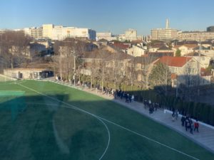 2日の午後入試も、試験後の集合場所はグラウンドとなります。明日も低温が予想されますので、受験生も保護者の皆様も寒さ対策をしてお越しください。