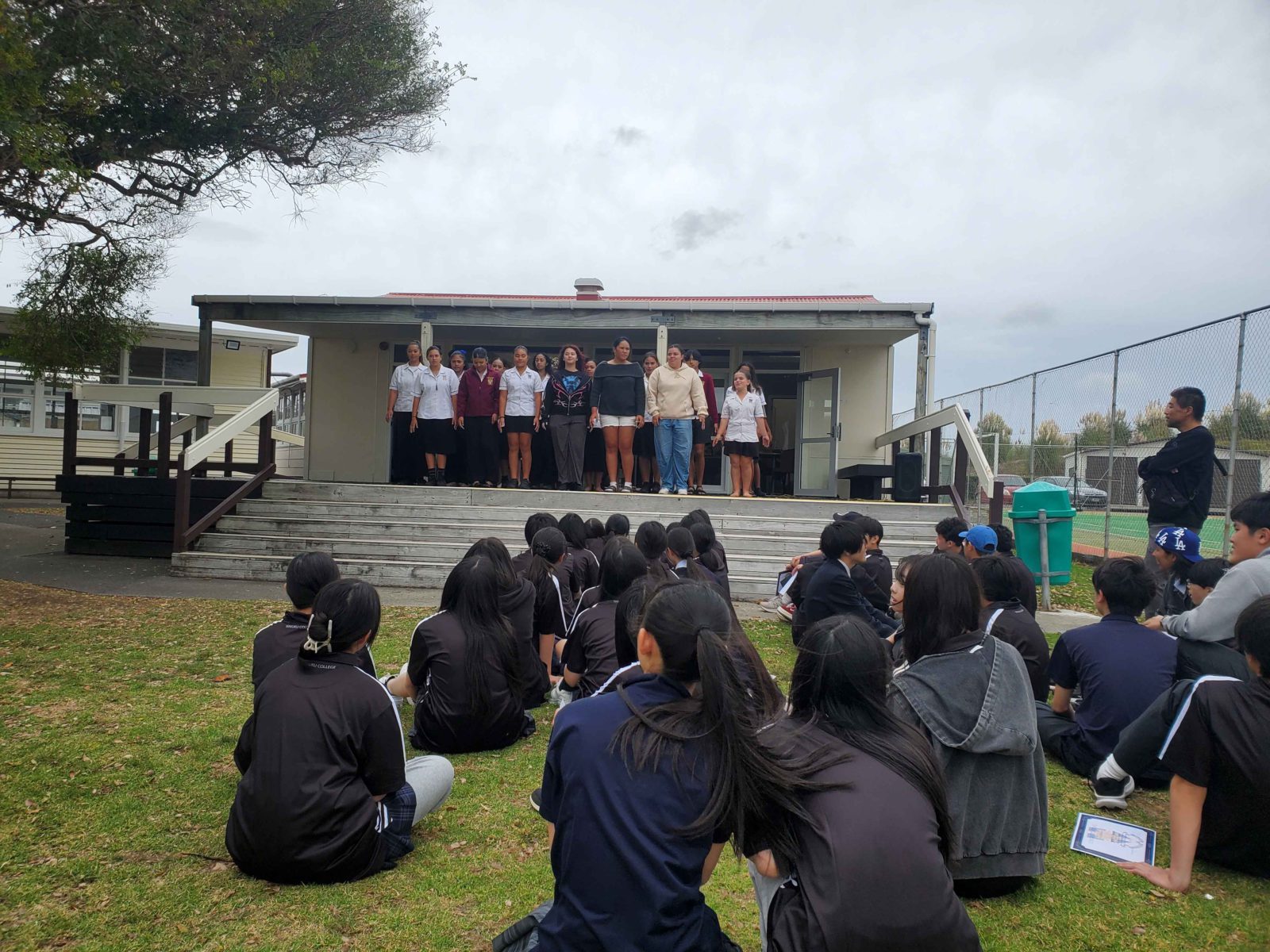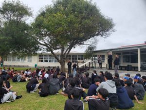 今日はワイウクカレッジでの最終日でした。午前中はバディとともに各自のクラスに参加し、午後は修了証書の授与式とさよならパーティーに参加しました。終了賞与は校長先生から一人一人いただきました。その後、マオリの歌やハカを見せてもらい、中大横浜の生徒たちは日本の文化としてソーラン節を、お礼の気持ちとともに披露してきました。そして、用意して頂いたスナックを囲み、バディとの別れを惜しみながら最後の交流をしました。