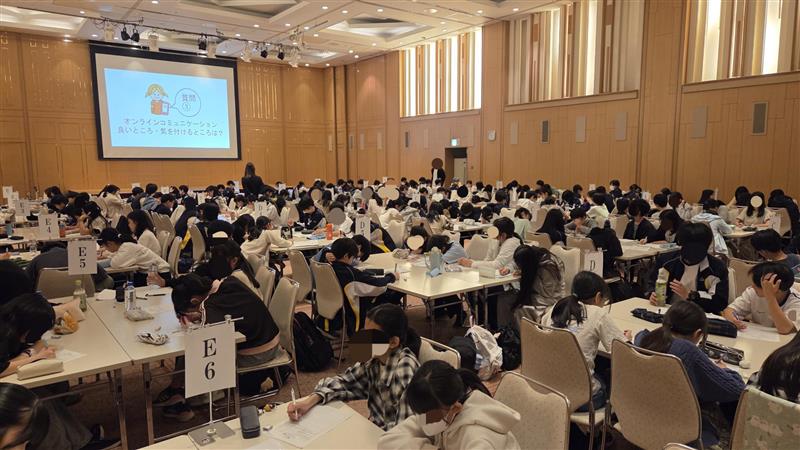 多くの生徒はスマートフォンを持ち、日ごろSNSなどを使ってコミュニケーションをとっていますが、スマホの便利さの陰には危険性が潜んでいます。そのことを改めて認識させられるお話があり、生徒たちは真剣に聞いていました。上手にインターネットに付き合っていけるように、学校に帰ってからも指導していきます。
