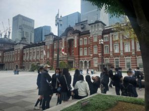 東京駅から半径5キロの範囲内で、各自の探究したいテーマ・場所に基づいて作成した班ごとのコースに沿って見学してきました。