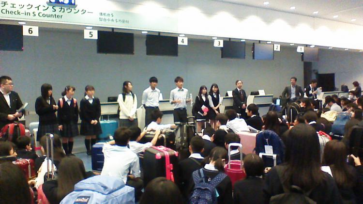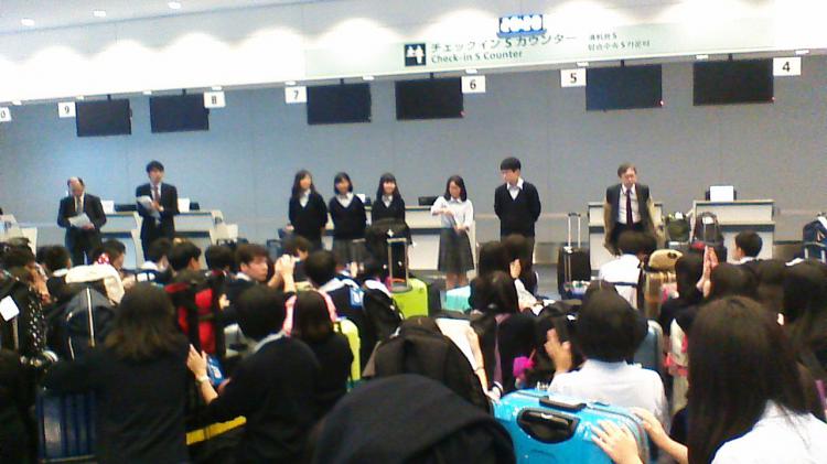 台風による悪条件でしたが、第二団SQ、JL両チームは無事にチェックイン、保安検査、出国審査を通過しました。