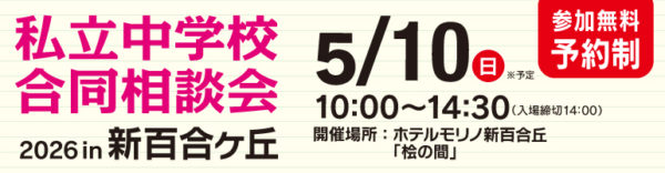 本校は5月10日(日)に新百合ヶ丘のホテルモリノ新百合ヶ丘で開催される「私立中学校合同相談会2026 in 新百合ヶ丘」に参加します。